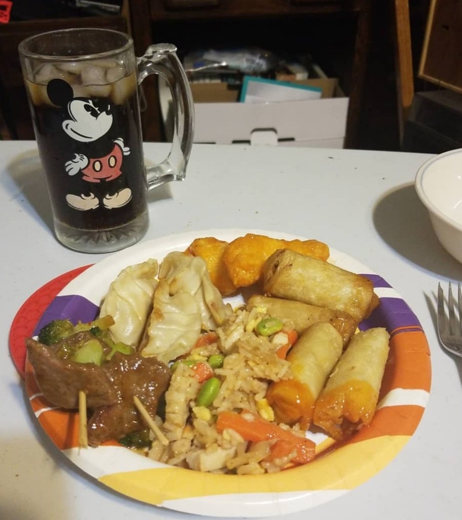 BREAKFAST: Apparently, an acknowledgment of Poultry Palace from the Toy Story short film Small Fry was the best choice for breakfast. The photo says it all – chicken patties in biscuits, fries, coleslaw, chocolate milk, and pineapple juice drink (the only thing not Toy Story-ish).